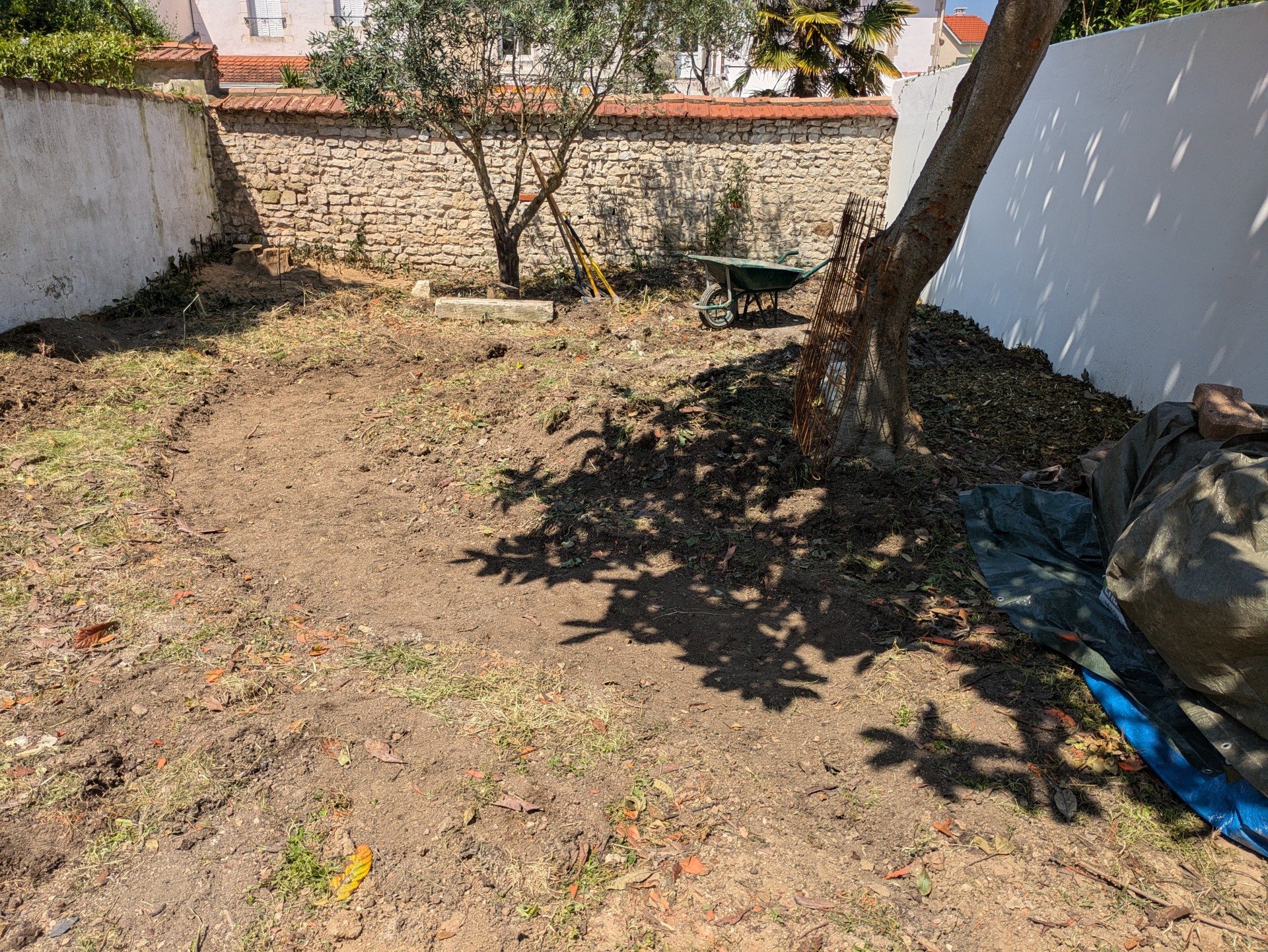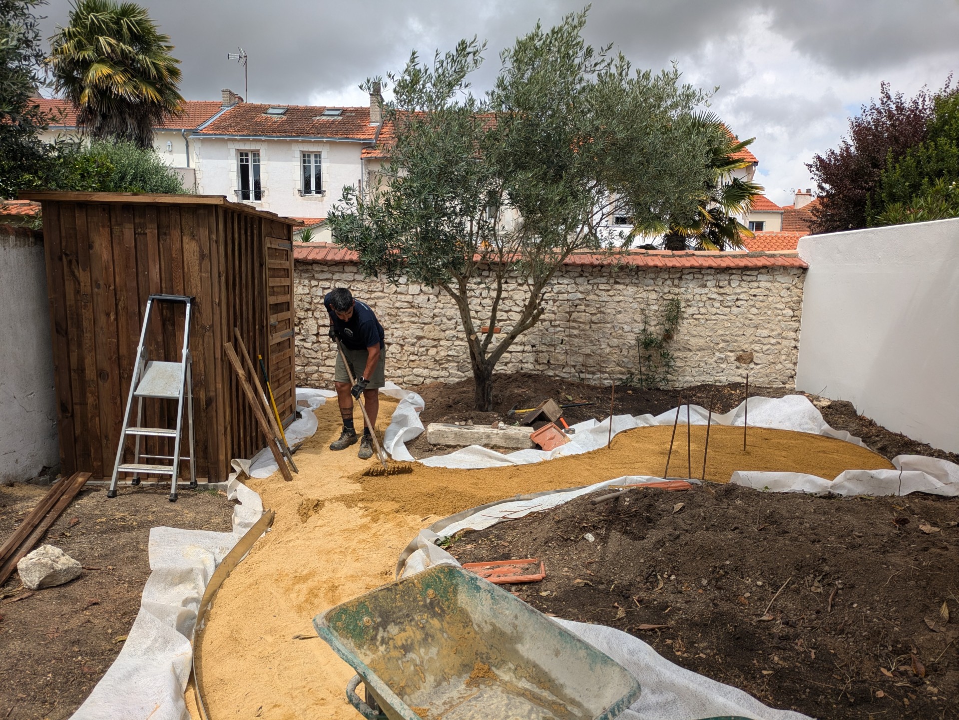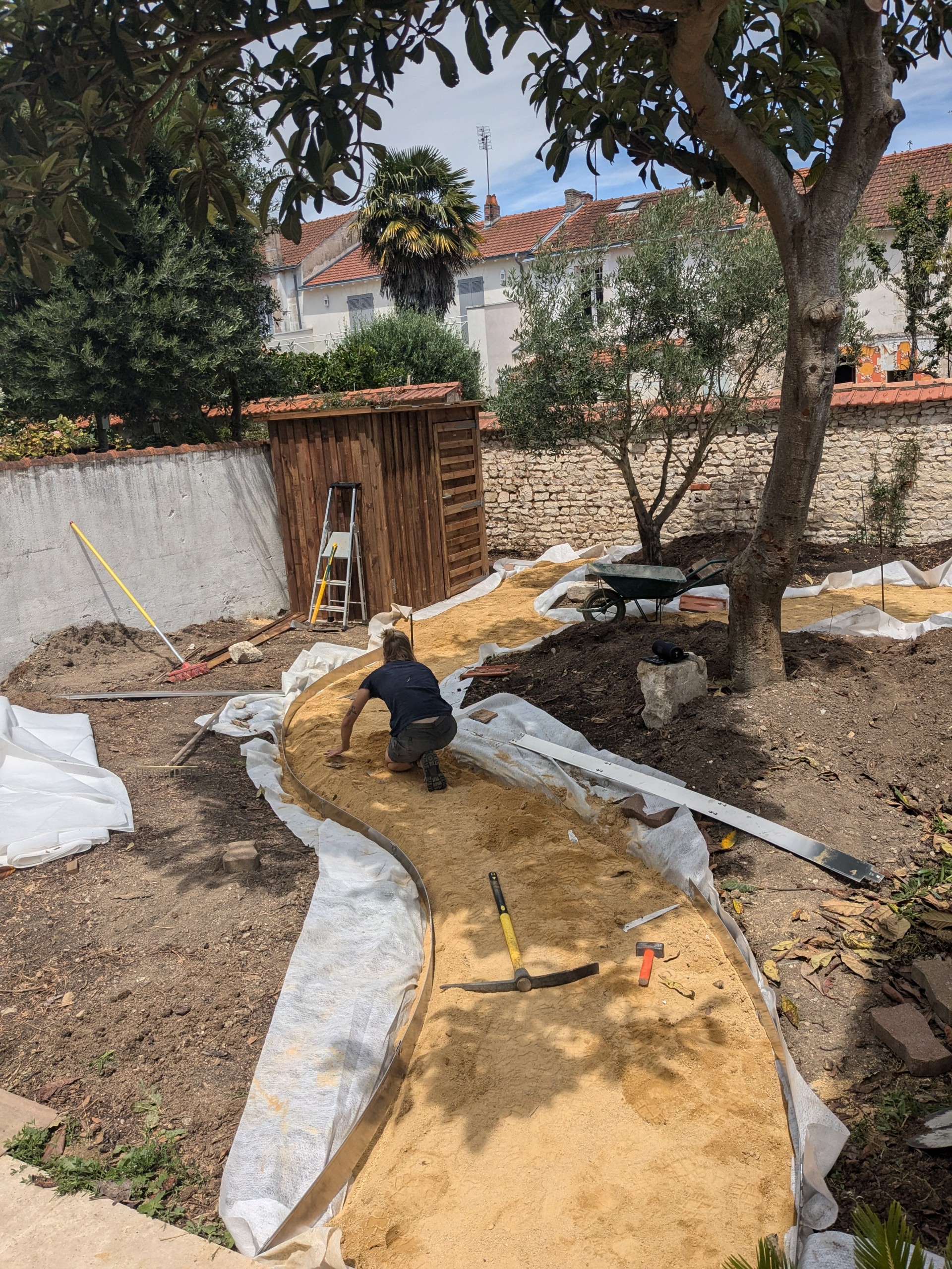 Au cœur de la rochelle, ce jardin a été imaginé comme une oasis apportant fraicheur et floraisons toute l’année. Installation d’un cabanon de jardin, réalisation d’un cheminement en calcaire, bordures en aluminium, plantes méditerranéennes et copeaux de bois au sol